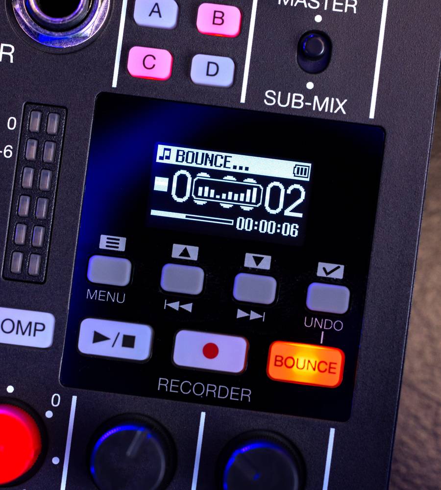 You can mix and bounce tracks to the dedicated ‘bounce track' freeing up additional channels to keep adding layers. If the bounce doesn’t hit the mark, ‘undo’ it and try again. Even after a bounce, individual tracks are saved to the SD card for future mixing.
