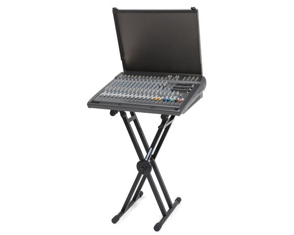 Precise sound control on the S4000 is enabled through each mono channel's low and high frequency EQ knobs, and advanced mid-frequency sweep and Cut/Boost with variable knobs. Further customization of your overall output is provided with a 9-band graphic EQ available on both the monitor and master output sections. Additional S4000 features include four Aux sends (1 Pre, 1 Pre/Post, 2 Effects) on each channel, onboard phantom power for integrating condenser microphones and Mute and Low Pass Filter buttons on all mono channels. The mixer also provides advanced monitoring in the form of 12-segment stereo LED level meters, 1/4" headphone and Speakon® outputs, as well as a Mono Sub output with variable low-pass filter. Lastly, the S4000 comes with a protective cover with locking latches for maximum durability.